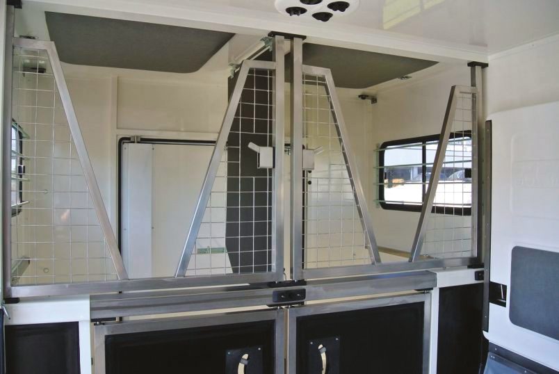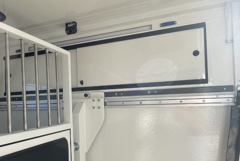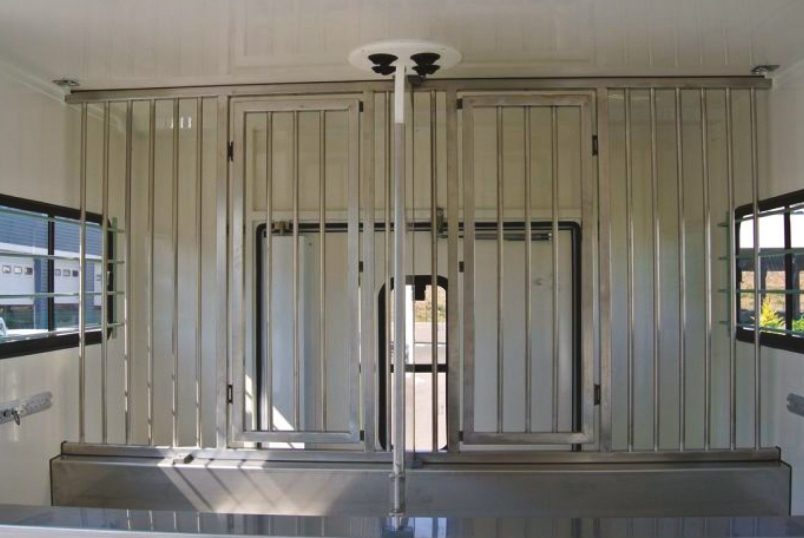 - Panel entre cabina y caballos con protección de goma y base de espuma