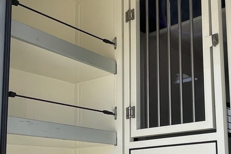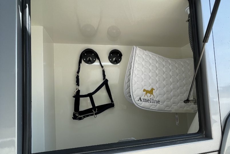 Petites portes à l'arrière de l'espace de rangement pour faciliter l'accès lorsqu'il y a beaucoup de matériel dans le casier à sellerie.