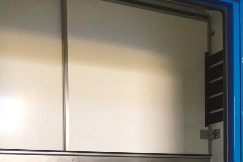 Portes coulissantes pour ranger en toute sécurité l'équipement au-dessus de la cabine.